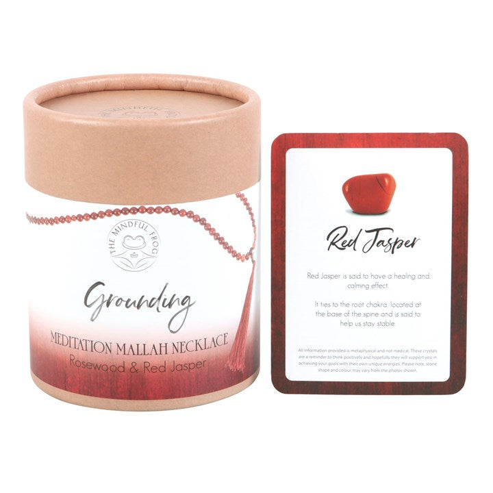Crafted from rich, warm rosewood beads and interlaced with striking Red Jasper stones, this elegant necklace showcases 108 beads — a traditional number in Mallah necklaces symbolizing spiritual journey and mindfulness — and is finished with a decorative tassel. The Red Jasper, known for its grounding properties and associated with the root chakra, is believed to instill stability, stamina, and a deep connection to the earth, nurturing courage and wisdom in the wearer. A Mallah, or Mala, necklace is a string of beads traditionally used in meditation and prayer in various spiritual practices, including Buddhism and Hinduism. Each bead represents a repetition of a mantra or prayer, aiding in focus and spiritual contemplation. To use, simply hold the necklace in one hand and move from bead to bead while focusing on mindful breathing and repeating an intention. The necklace can also be worn throughout the day as a reminder of these intentions, serving as a grounding tool in your daily life. Each Grounding Rosewood and Red Jasper Mallah Necklace is presented in a beautifully designed box, accompanied by a corresponding information card, making it an ideal and thoughtful gift for a loved one who seeks balance, grounding, and a deeper connection to their inner strength.