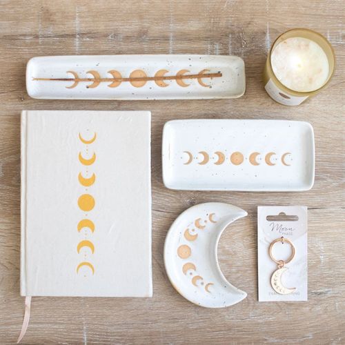 Whether it's for journalling, keeping notes at work or writing goals and affirmations, this gorgeous lined A5 notebook will have you feeling inspired to reach for your pens so you can jot down thoughts and ideas to clear your head. Covered with a velvet material and featuring a moon phases design in metallic gold, this gorgeous notebook is a great for anyone who love stationery and staying organised. 100 sheets / 200 lined pages.